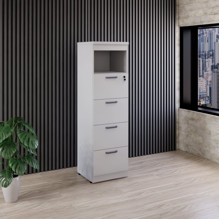 Armário para Escritório Arquivo 4 Pastas 1 Nicho Espresso Móveis Cinza