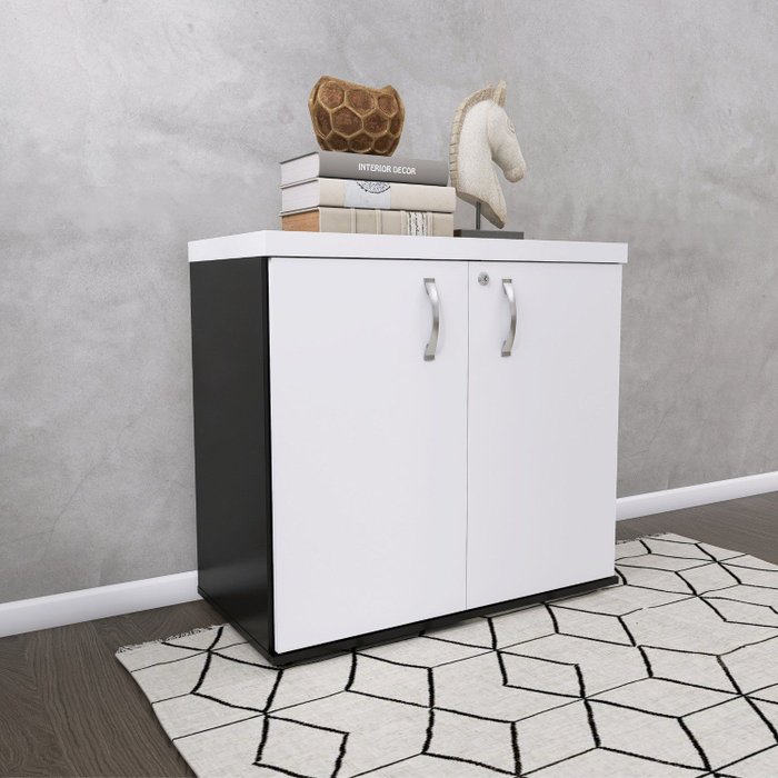 Armário para Escritório Baixo 2 Portas com Chave Preto/Branco