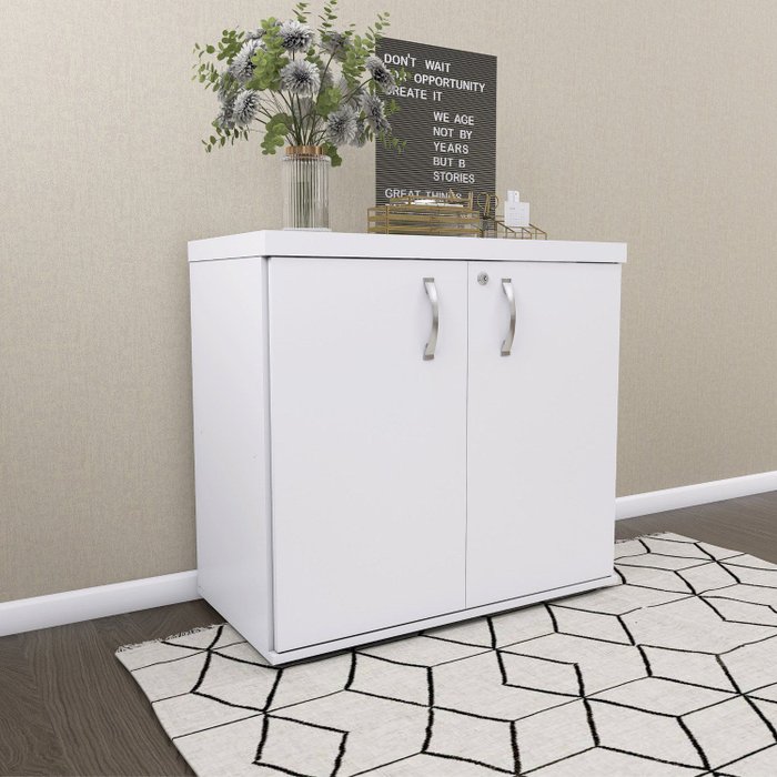 Armário para Escritório Baixo 2 Portas com Chave Branco