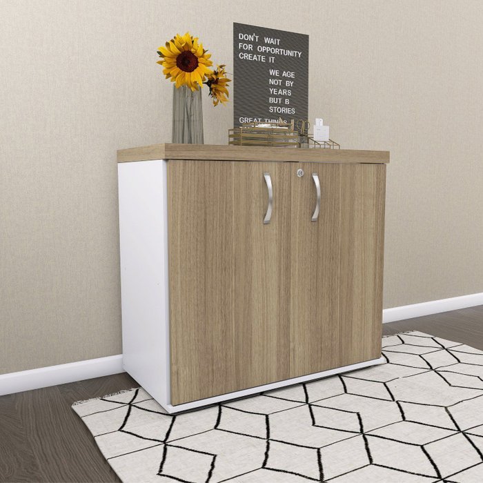 Armário para Escritório Baixo 2 Portas com Chave Branco/Noce Naturalle