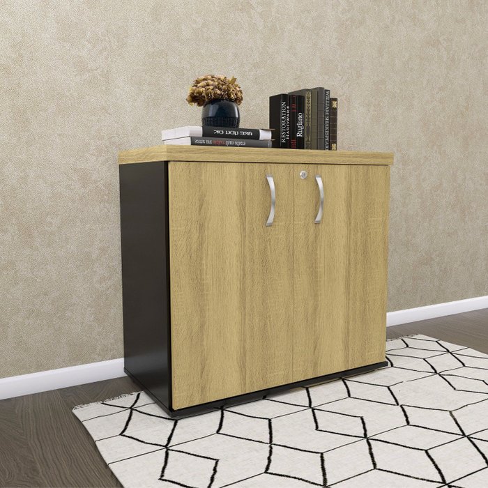 Armário para Escritório Baixo 2 Portas com Chave Preto/Samba