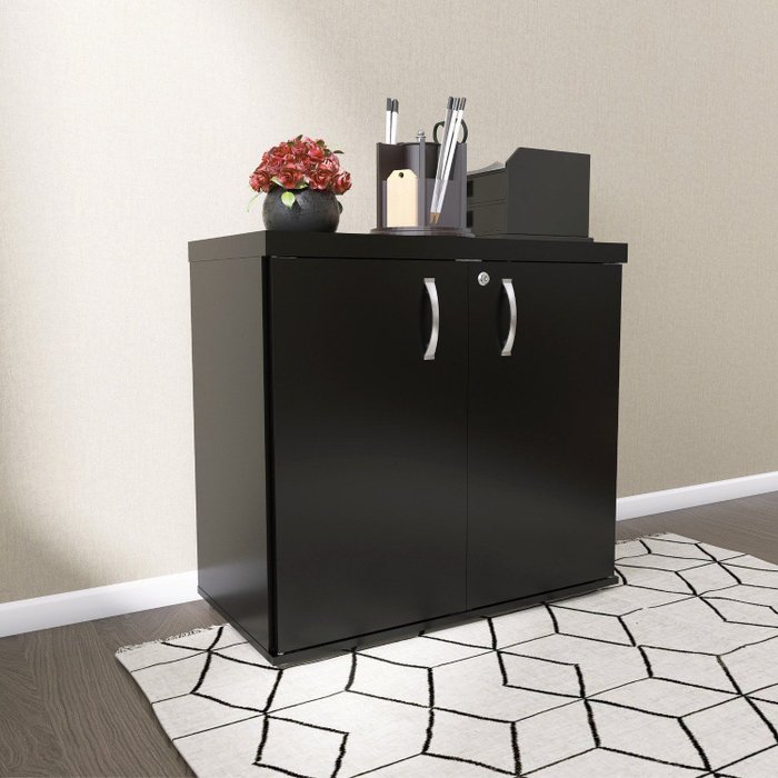 Armário para Escritório Baixo 2 Portas com Chave Preto