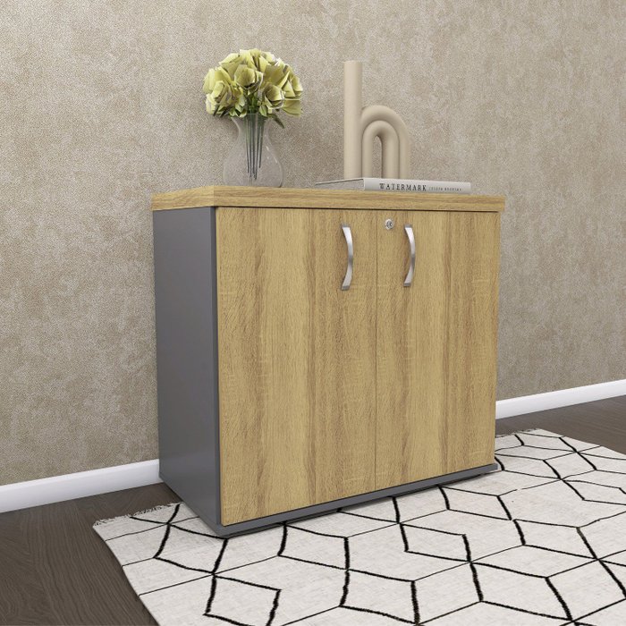 Armário para Escritório Baixo 2 Portas com Chave Grafito/Samba