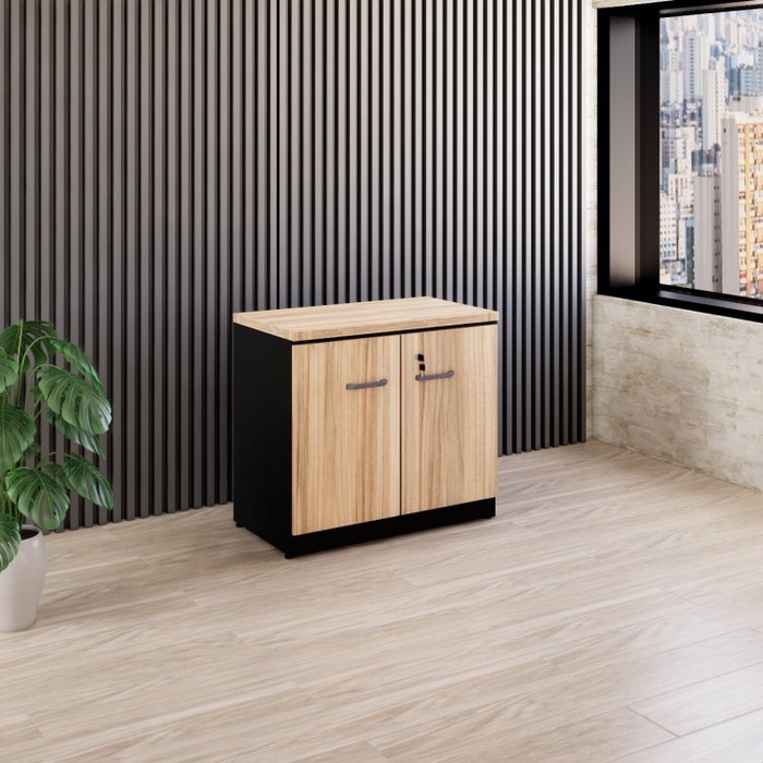 Armário para Escritório Baixo 2 Portas Espresso Móveis Calvi/Preto
