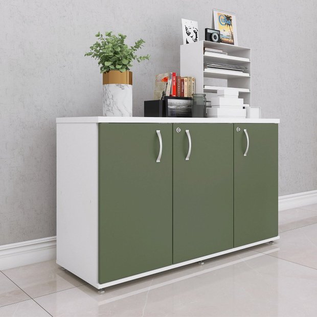 Armário para Escritório Credenza 03 Portas Pivotante Branco/salvia