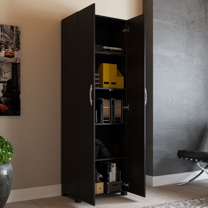 Armário para Escritório Dunas com Chave 2 Portas 4 Prateleiras Preto Tx - Pnr Móveis Preto