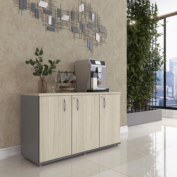 Armário para Escritório Pivotante Credenza Grafito/Castanheira