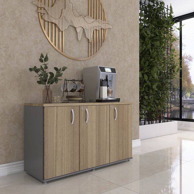 Armário para Escritório Pivotante Credenza Grafito/Noce Naturalle