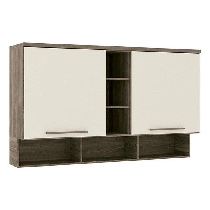 Armário Ponte Modulado Aéreo Queen Doce Vida 2 Portas cor Castanha/Off White - Santos Andirá