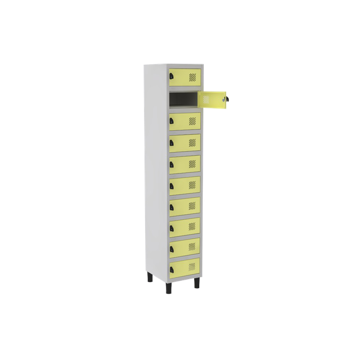 Armário Porta Objetos De Aço 10 Portas Amarelo Corpo Cinza / Portas Amarelas