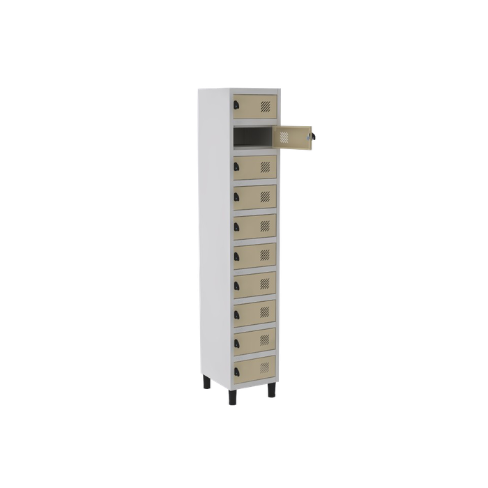 Armário Porta Objetos De Aço 10 Portas Bege Bege