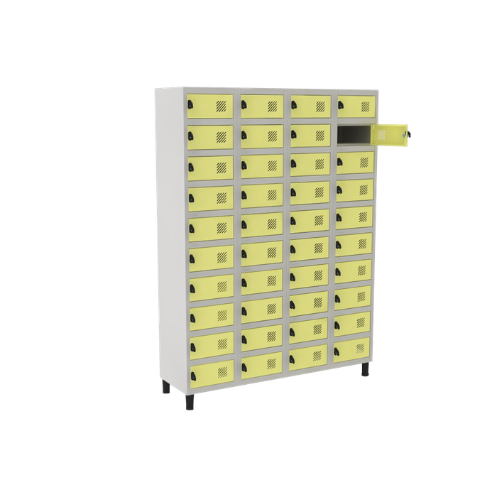 Armário Porta Objetos De Aço 40 Portas Amarelo Corpo Cinza / Portas Amarelas