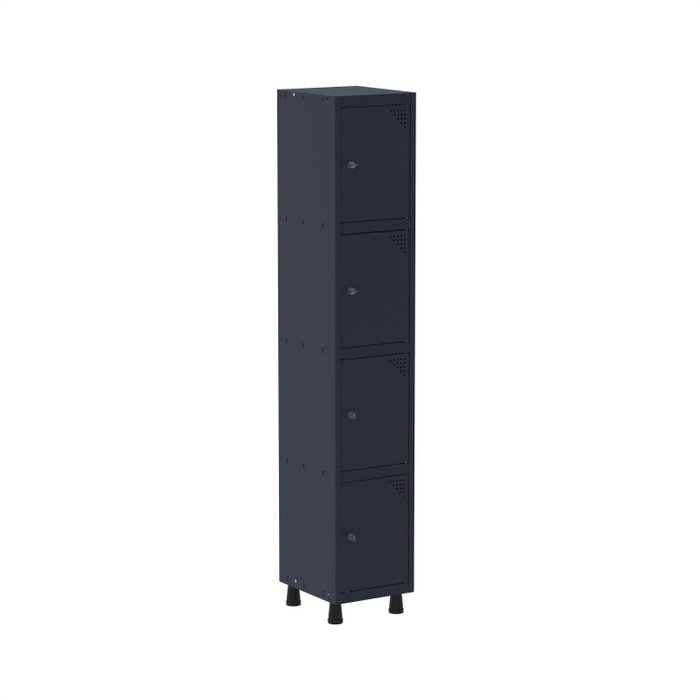 Armário Roupeiro de Aço totalmente montável, dispensa a utilização de parafusos, estrutura em chapas #24 e #26 (0,60mm e 0,45mm) conta com uma porta com estampos circulares em formação triangular para ventilação, sistema de fechamento de varão de 3 pontos, através de pitão para cadeado.