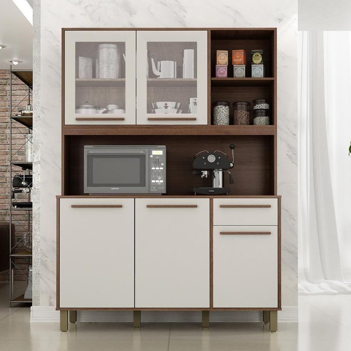 Armário Rubi Chocolate/Off White ValdemóveisArmário de Cozinha Rubi: funcional e elegante. Resistente e durável, com três opções de cores. Perfeito para uma cozinha organizada e estilosa. Adquira o seu agora mesmo!ESPECIFICAÇÕES TÉCNICASCódigo GTIN/EAN 7899611238901. Acompanha Nota Fiscal. Material de composição: Aço. Cor: Chocolate/off white. Marca: Valdemóveis. Acabamento revestido com pintura UV. Material: Mdp15mm. Acabamento do tampo: Mdp Cinamomo Acetinado 15mm. Quantidade de portas: 5 Quantidade de prateleiras/base: 2. Estrutura das prateleiras: Mdp 15mm. Quantidade de nichos: 3. Quantidade de gavetas: 1. Gavetas com corrediças telescópicas. Pés: Pés niveladores de 25mm. Quantidade de pés: 6. Material dos pés: EPS. Detalhes: Puxador em Mdf envelopado.Porta de bater com dobradiça metálica de presssão.Espaço para Micro-ondas. Espaços do produto: Espaço live tampo 117x40,9x45 (LxAxP).2 nichos 35x3126 (LxAxP) . Produto nacional. Requer instalação profissional. Acompanha manual de montagem. MEDIDASLargura: 120,5 cm. Altura: 200 cm. Profundidade: 45 cm. Peso líquido: 62,4 kg.RECOMENDAÇÕES DE MANUTENÇÃO E LIMPEZALimpeza com pano umedecido. AVISOSAs cores dos produtos podem sofrer alterações dependendo do seu monitor ou tela do celular. Não nos responsabilizamos pela montagem e instalação dos produtos.Os objetos, eletrodomésticos e demais móveis que ambientam as fotos não acompanham o produto. Todos os produtos sempre são embalados com total segurança em caixas de papelão revestidas com plástico. Confira a embalagem e o produto no ato da entrega, caso o produto ou embalagem estejam avariados recuse imediatamente, coloque uma observação no verso da nota, se possível, registre por meio de fotos no momento da entrega e entre em contato conosco. Não nos responsabilizamos no ato da entrega por montagens, desmontagens, instalações de produtos, nem utilização de guinchos ou equipamentos similares para acesso a pisos superiores em apartamentos. A entrega será feita até a porta ou portaria do endereço no qual o pedido foi efetuado.Qualquer necessidade de movimentação do produto até o local onde ele será utilizado é de inteira responsabilidade do cliente. Sempre confira as dimensões do produto com as dimensões das passagens nas quais ele precisará ser deslocado, certifique-se de que passará normalmente por escadas, elevadores, portas e corredores. Em nenhuma hipótese as transportadoras sobem escadas, elevadores e adentram residências. DepthWidthSideToSide: 195 | HeightWidthSideToSide: 195 | LengthWidthSideToSide: 52.5 | Cor: Cinamomo/GrafiteValdemóveis