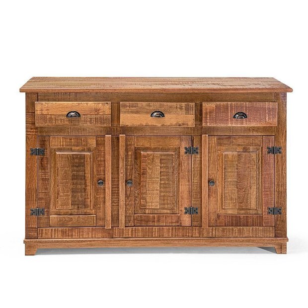 Armário Rústico Decorativo Em Madeira Maciça 3 Portas 3 Gavetas - Natural - Bege