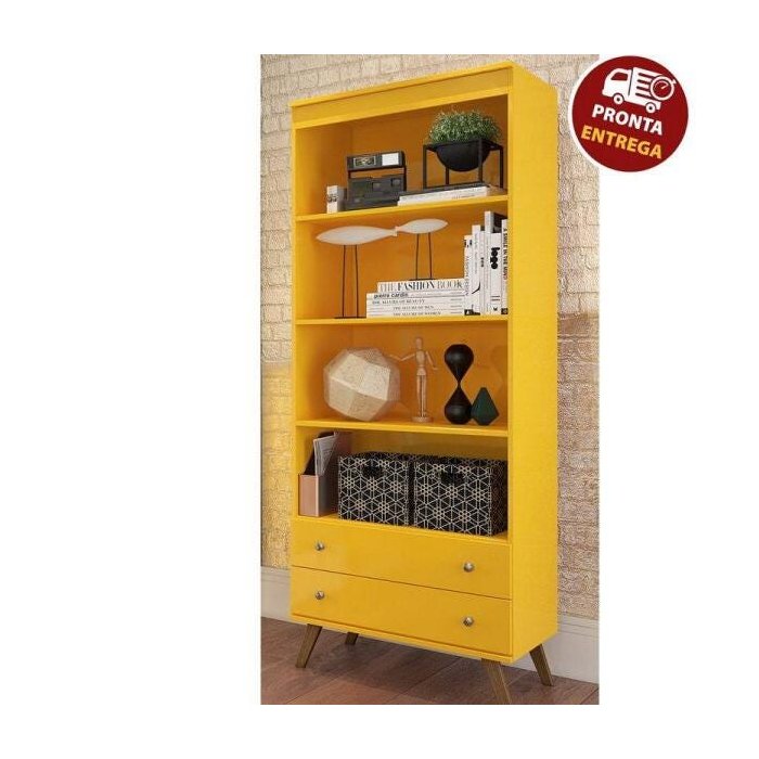 Descrição do produto: Armário S/Porta Retrô Amarelo 2 Gavetas e 4 PrateleirasSeu visual leve destaca ainda mais os objetos que se encontram nela, por isso é ideal para organizar objetos decorativos e livros.Cor: Amarela