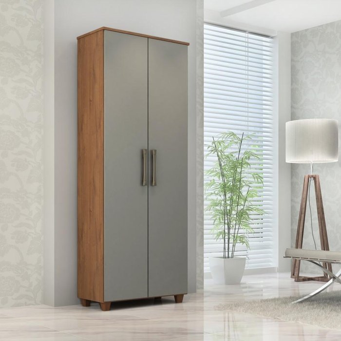 Armário Sapateiro Multiuso Lages 2 Portas 5 Prateleiras MDF Marrom Madeira Grafite