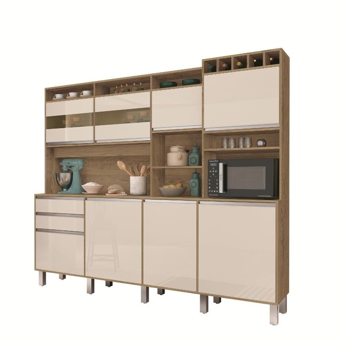 8 Portas: Organize sua cozinha com eficiência! São 2 portas ripadas e 6 portas planas, garantindo o máximo de espaço.