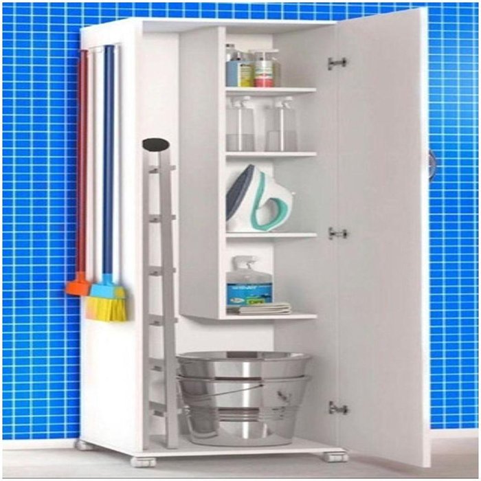 Armário Super Porta Vassouras Branco De 1 Porta Multiuso
