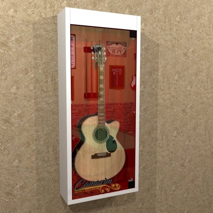 Armário Suporte para Violão e Guitarra com Porta de Vidro e Iluminação Led - Fundo Veludo - Sv03 Cam