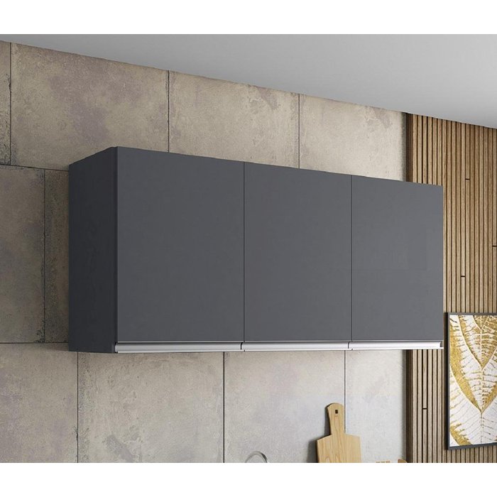 Armário Suspenso Andréia 120mt com Puxadores Embutidos Cinza Ajl
