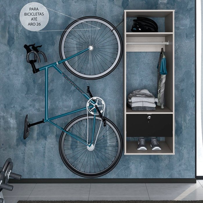 Armário Suspenso com 1 Suporte para Bicicleta Nepal Cinza/Preto