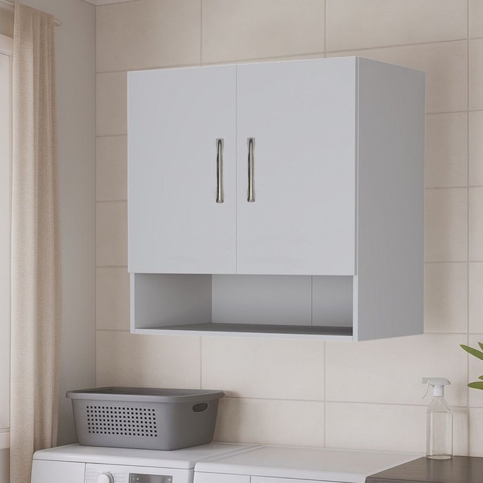 Armário Suspenso Multiuso Mdf Resistente 2 Portas com Nicho Branco