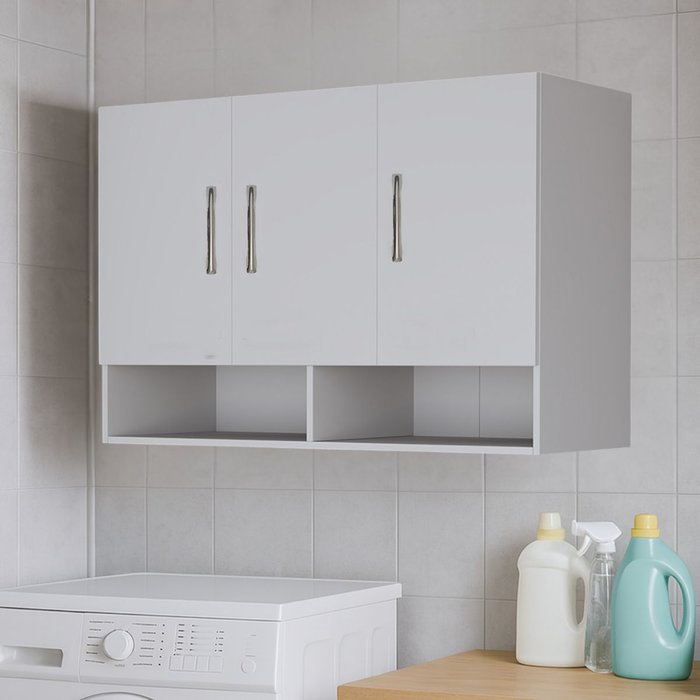 Armário Suspenso Multiuso Mdf Resistente 3 Portas com Nicho Branco