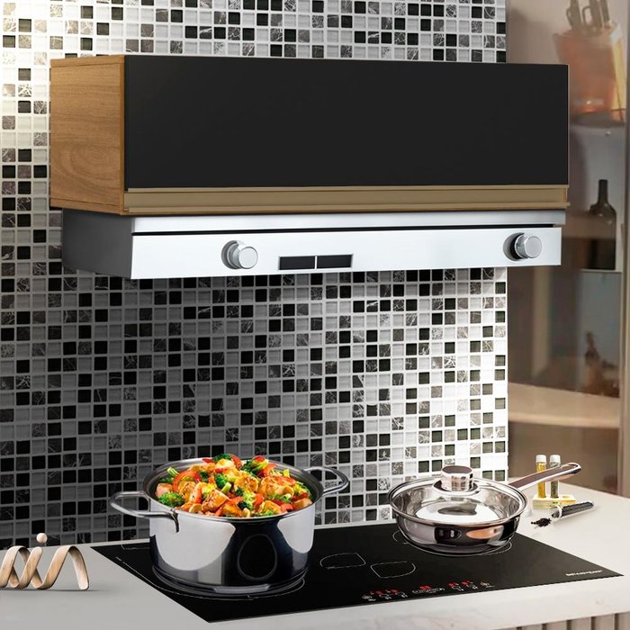 Armário Suspenso para Coifa 80cm com Porta Basculante Nature Preto Fosco Jade Jm Móveis