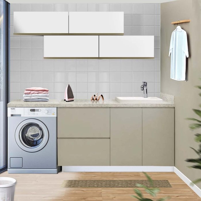 Armário Suspenso Para Lavanderia 4 Módulos Com Porta Basculante 100% MDF Branco Asger Shop Jm