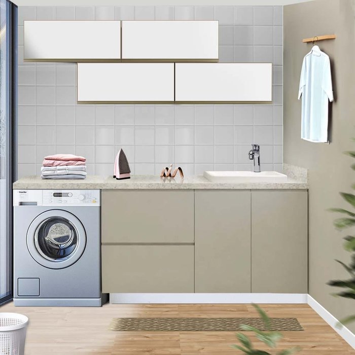 Armário Suspenso Para Lavanderia 4 Módulos Com Porta Basculante 100% MDF Carvalho Off White Cetim