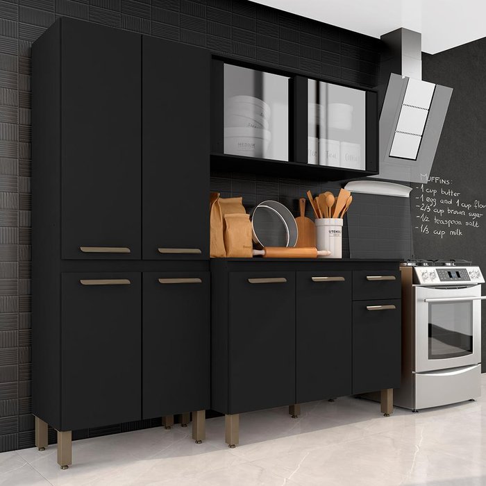 Armário Tieli Paneleiro Duplo 3 Peças Preto Fosco - Móveis Arapongas Preto Fosco