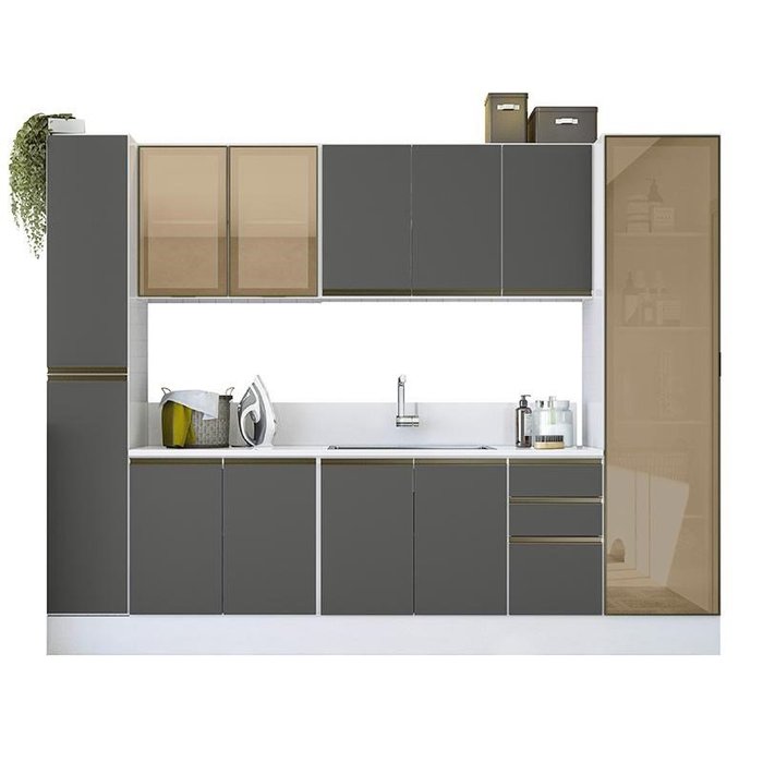 Os Armários Multiuso para Lavanderia fazem parte da linha Kali Premium, que foi elaborada para atender altos padrões de elegância, requinte e qualidade. Ela traz um acabamento refinado e diferencias como portas com perfil alumínio e vidro reflecta, puxadores em alumínio, dobradiças com amortecedor e pés com regulagem de altura, além de muito espaço. Organize sua lavanderia com bom gosto e estilo.