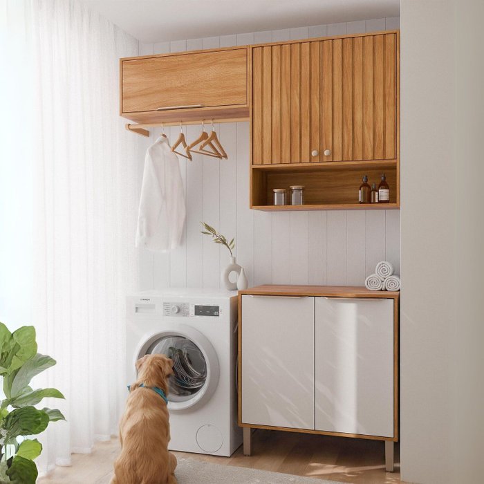 Armários Multiuso para Área de Serviço 3 Peças com 5 Portas Divina Cinamomo/Off White