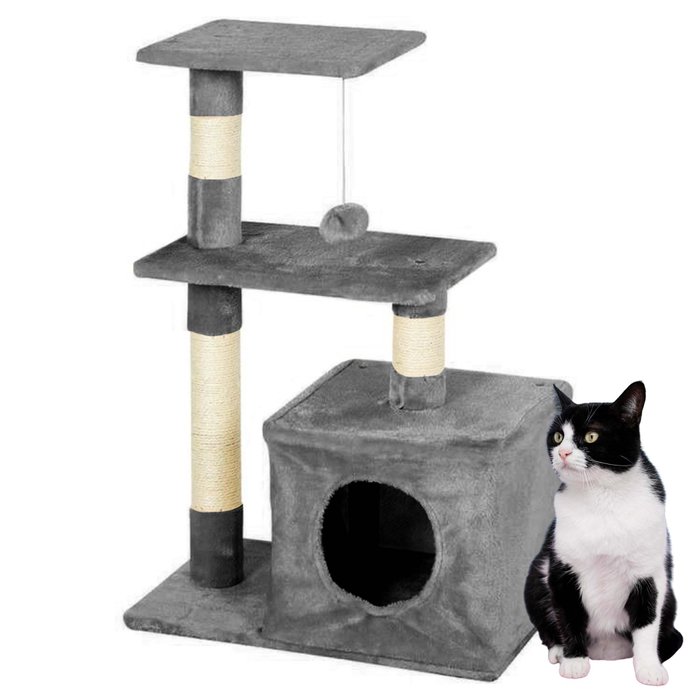 Arranhador de Gato 3 Andares Grande Casinha Aconchegante Brinquedo Confortável de Estimação Diversão Cinza