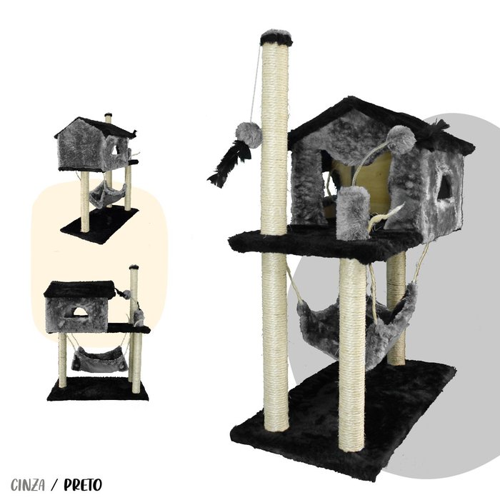 Arranhador Gato Casinha COM REDE Tubao Tubinho - PRETO / CINZA
