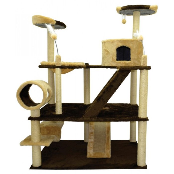 ARRANHADOR OLIMPUS EM PELÚCIA LISA MARROM E SISAL COM 3 PLATAFORMAS O arranhador Olimpus é um verdadeiro parque de diversões para os gatos. Rampa, cesto para ninhada, camas elevadas, túnel para descanso e escada de acesso, fazem parte desse incrível arranhador. Um arranhador para quem é apaixonado por gatos e que suprirá totalmente as necessidades para quem tem mais de um. Revestido em pelúcia e com uma grande quantidade de áreas com sisal, para os gatos afiarem suas unhas. MEDIDAS: 80X120X185cm