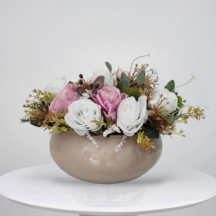 Arranjo Centro de Mesa Flores Rosas Lindas Artificial e Vaso