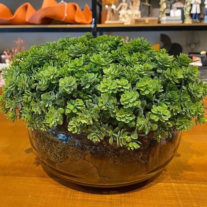 Arranjo Centro de Mesa Vaso Incolor com Verdinho Folhagem Completo Decore Fácil Shop incolor
