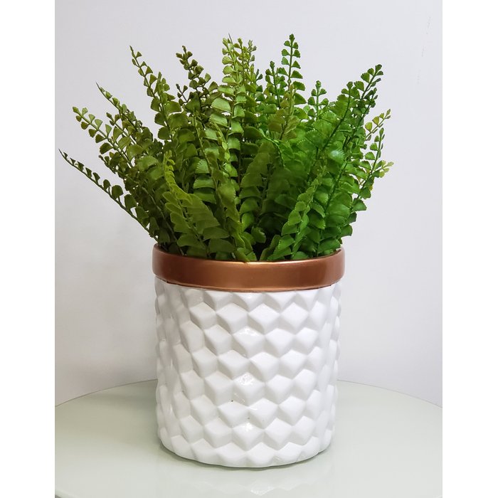 As flores artificiais para decoração são o que há de mais bonito no mercado, já que são feitas com materiais de grande qualidade e oferecem ao arranjo uma aparência elegante. Quartos, salas de estar e de jantar, cozinhas e home offices ganham um toque especial com a ajuda das flores artificiais para decoração, que são muito eficientes na tarefa de dar mais vida a qualquer ambiente.Flores sintético hastes de Mix de Samambaia verdeVaso cerâmica.Flores em seda sintético, arame, cor verde em alto padrãoO Arranjo vai completo e montado. Basta abrir a caixa e pronto. Altura: 0.36 cm Largura: 0.26 cm Comprimento: 0.26 cm Peso: 1500 g