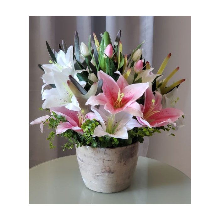 Arranjo Com Vaso De Flores Lírios Artificial 8289