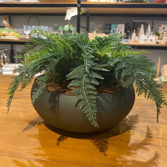 Arranjo permanente de Samambaia em efeito hiper-realista com vaso Verde Musgo.