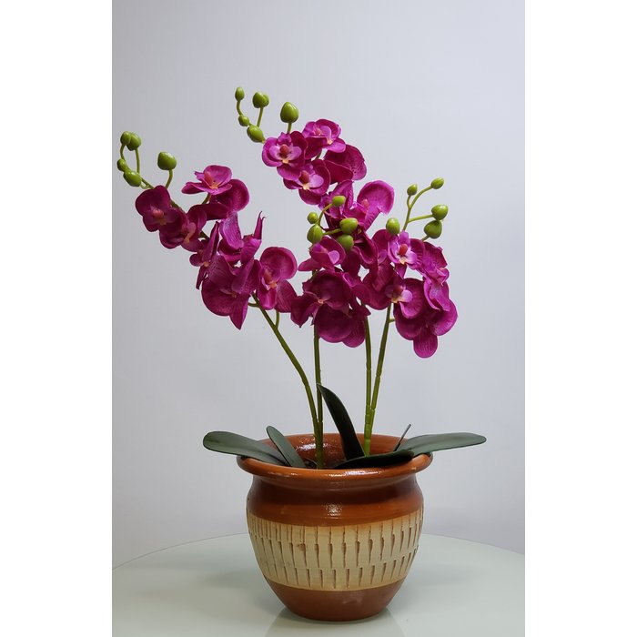 Arranjo De Flores Orquídeas Roxa No Vaso Cerâmica