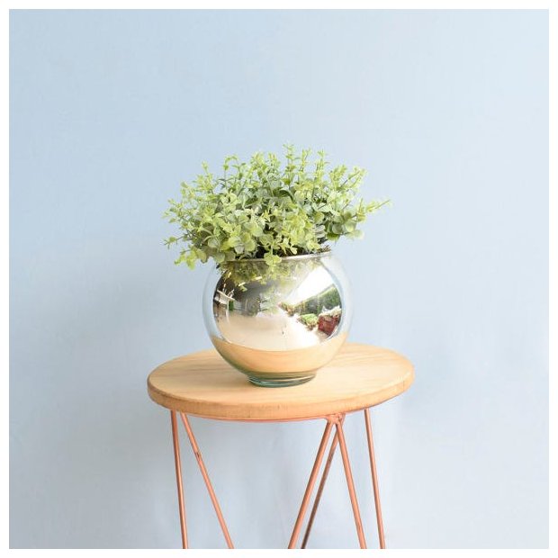Arranjo de Folhagem Eucalipto Artificial Verde no Vaso Redondo Pequeno Espelhado | Linha permanente Formosinha