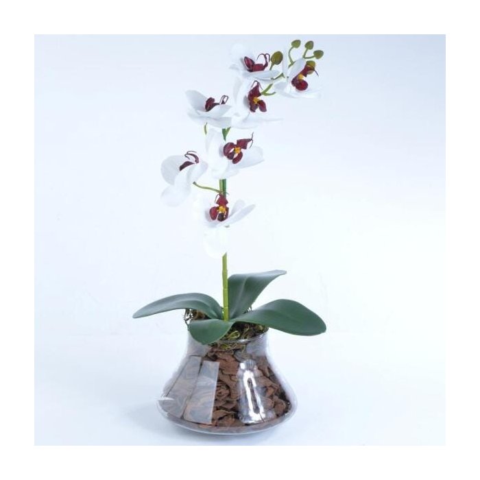 Arranjo de Orquídea Artificial Branca Miolo Vinho Paty branca com miolo vinho