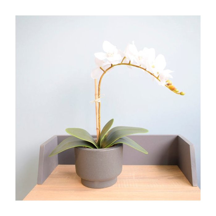 Arranjo de Orquídea Artificial Branca no Vaso Cumbuca Cinza Branca