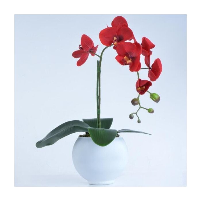 Arranjo de Orquídea Vermelha em Vaso Branco Fosco