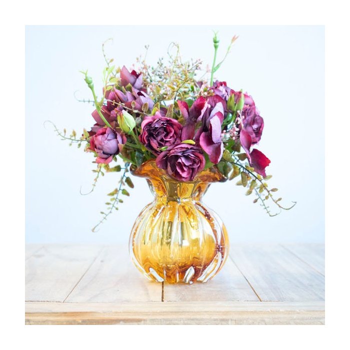Arranjo de Rosas Marsala Artificiais no Vaso Trouxinha Âmbar | Linha Permanente Formosinha