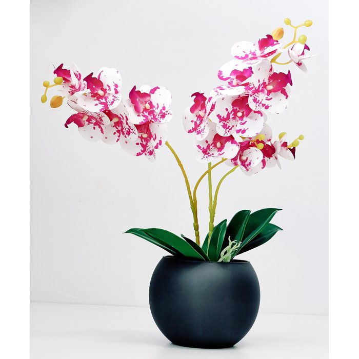 Arranjo Flores Orquídeas Tigrada Artificiais E Vaso Black