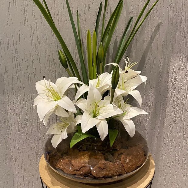 Arranjo Grande Centro de Mesa Lírio Branco Artificial Completo